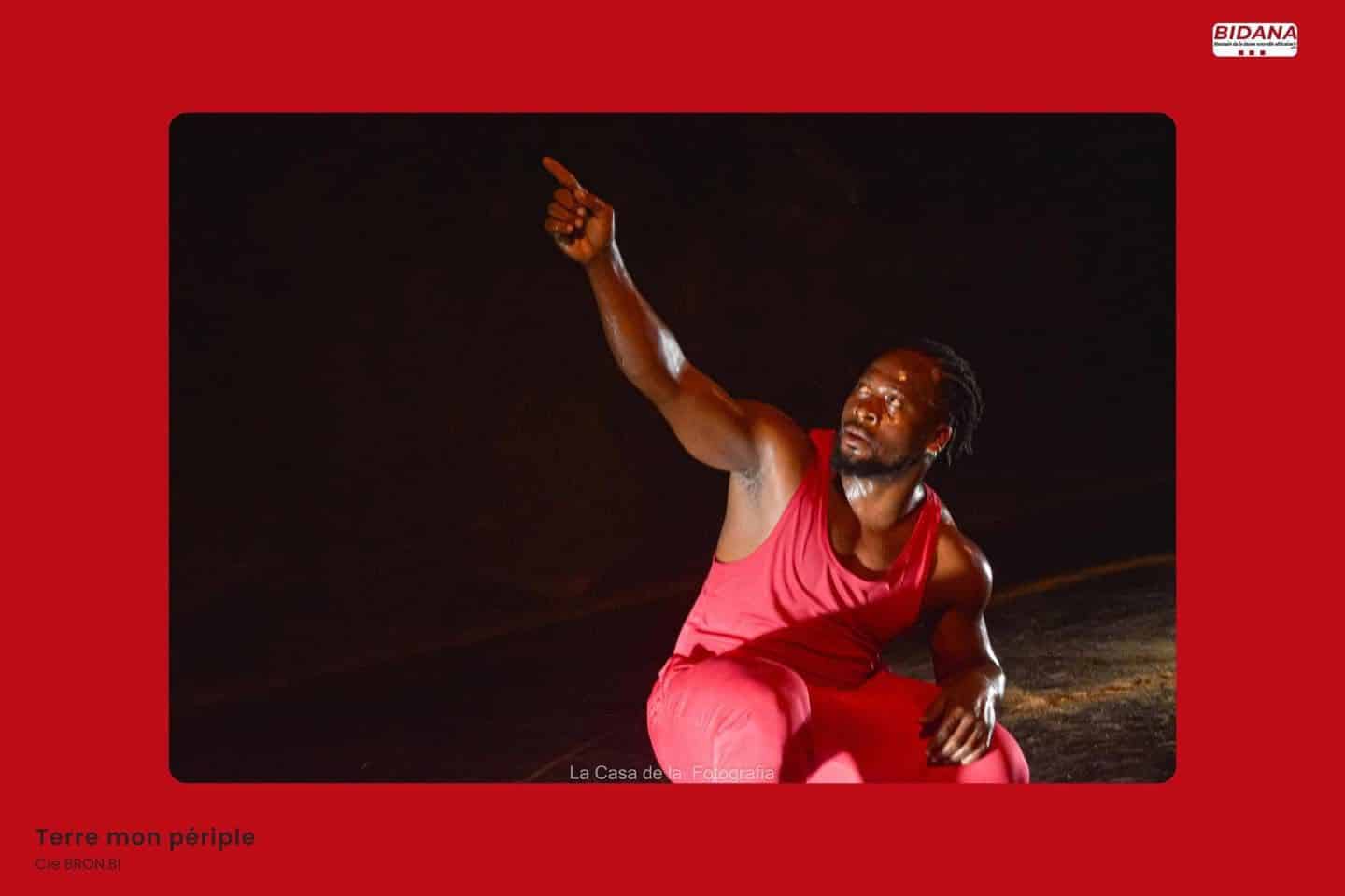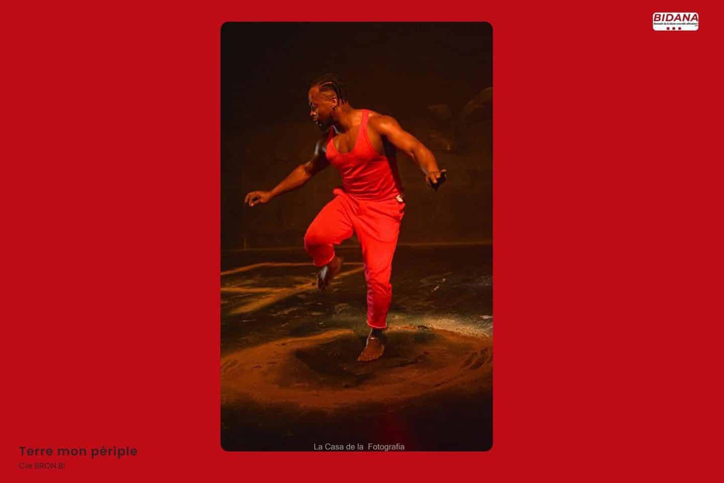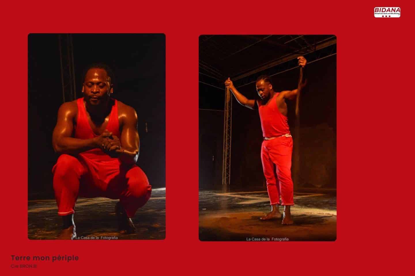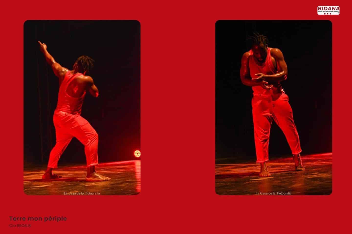 Pas à pas Roméo Bron Bi nous dévoile les danses traditionnelles de son pays, et nous transporte dans son voyage corporel et géographique. Il nous fait découvrir par la pratique physique et orale, les danses qui constituent le spectacle.